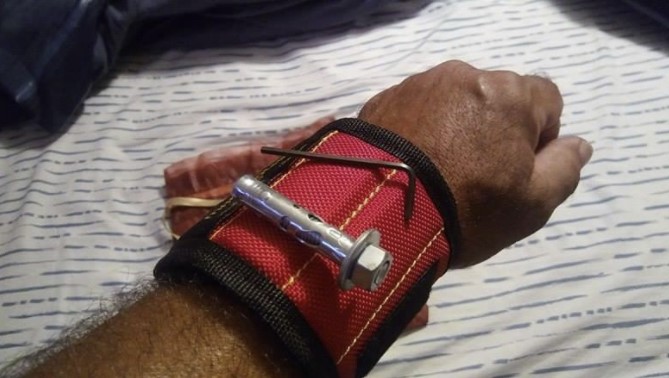 There’s a painful frustration when it comes to working on a repair or construction job and needing to get up and down or turn backward then forward — over and over. When it comes to retrieving your tools for your hands-on work, it can be annoying and physically exhausting (and dangerous, especially if you are on a ladder). That’s why when you can keep everything tightly secured right at your wrists, it’s so much more convenient to get any job done. Our Magnetic Wristband allows you to keep things magnetically secured at your wrist for speedier work!